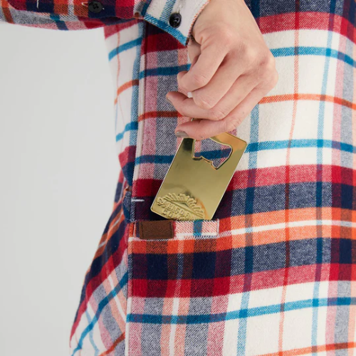 • Every High Sierra flannel shirt features Stack of Conversation Stopper Cards, Beer Koozie, and Bottle Opener.